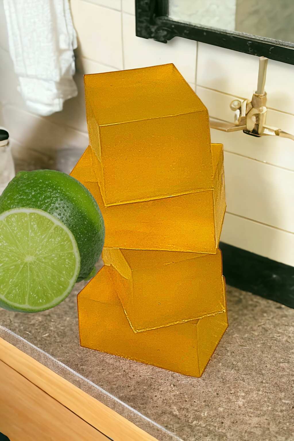 Ingredients green lemon peel, vegetable glycerin, distilled water and crystal clear Glycerin. ( Melt and Pour)